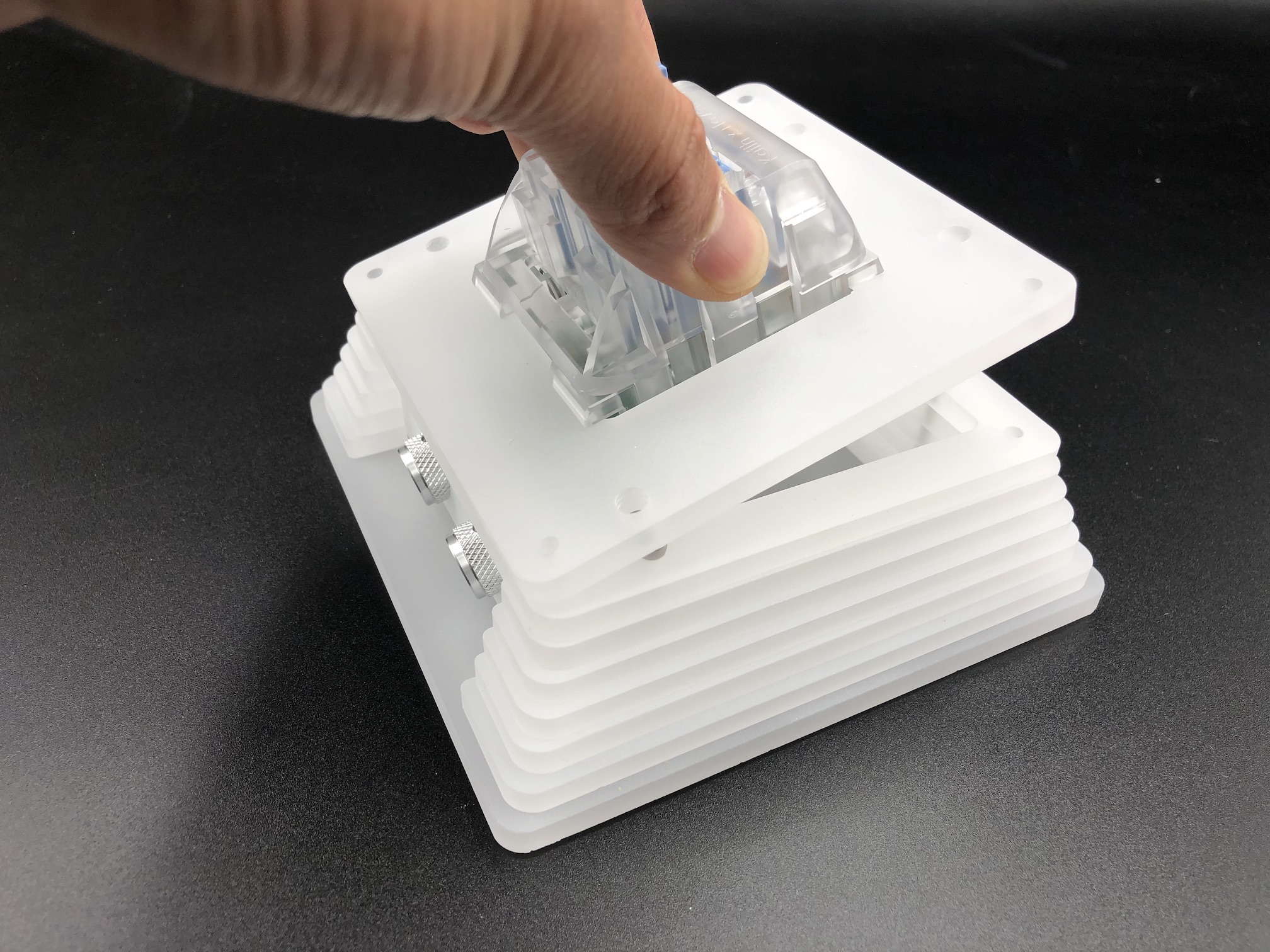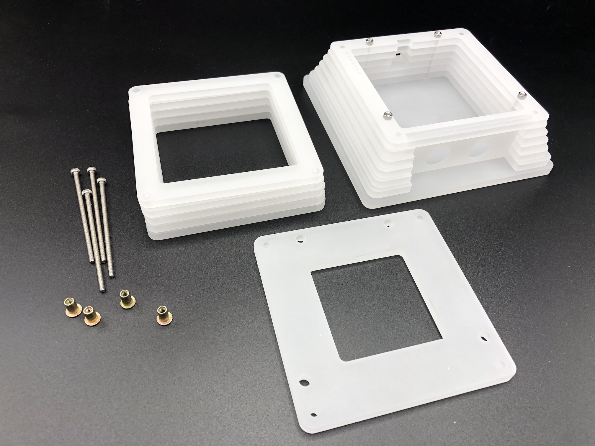Add the rivet nuts to the underside of the bottom plate, stack all the top layers in place, and then screw them in.