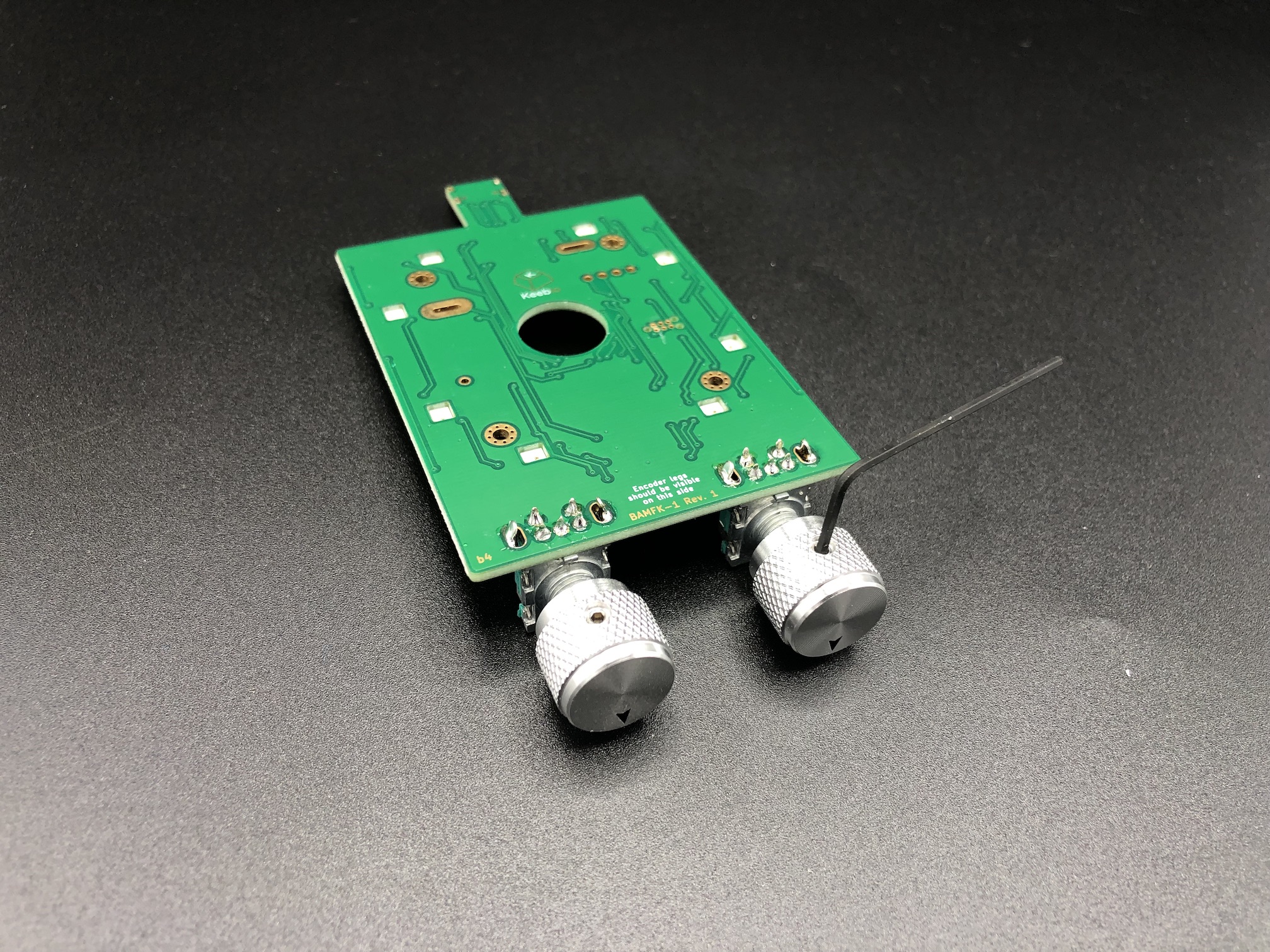 Install the knobs onto the rotary encoders and use the 1.5mm hex key to tighten them into place. It'll be more difficult if you screw on the knobs later, so do it now.