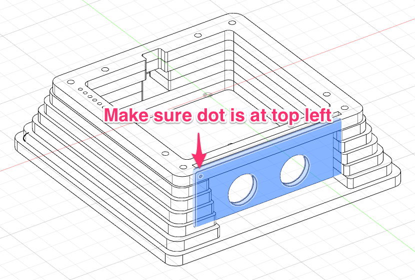 Insert the front panel piece, making sure the registration dot is aligned to the top left.