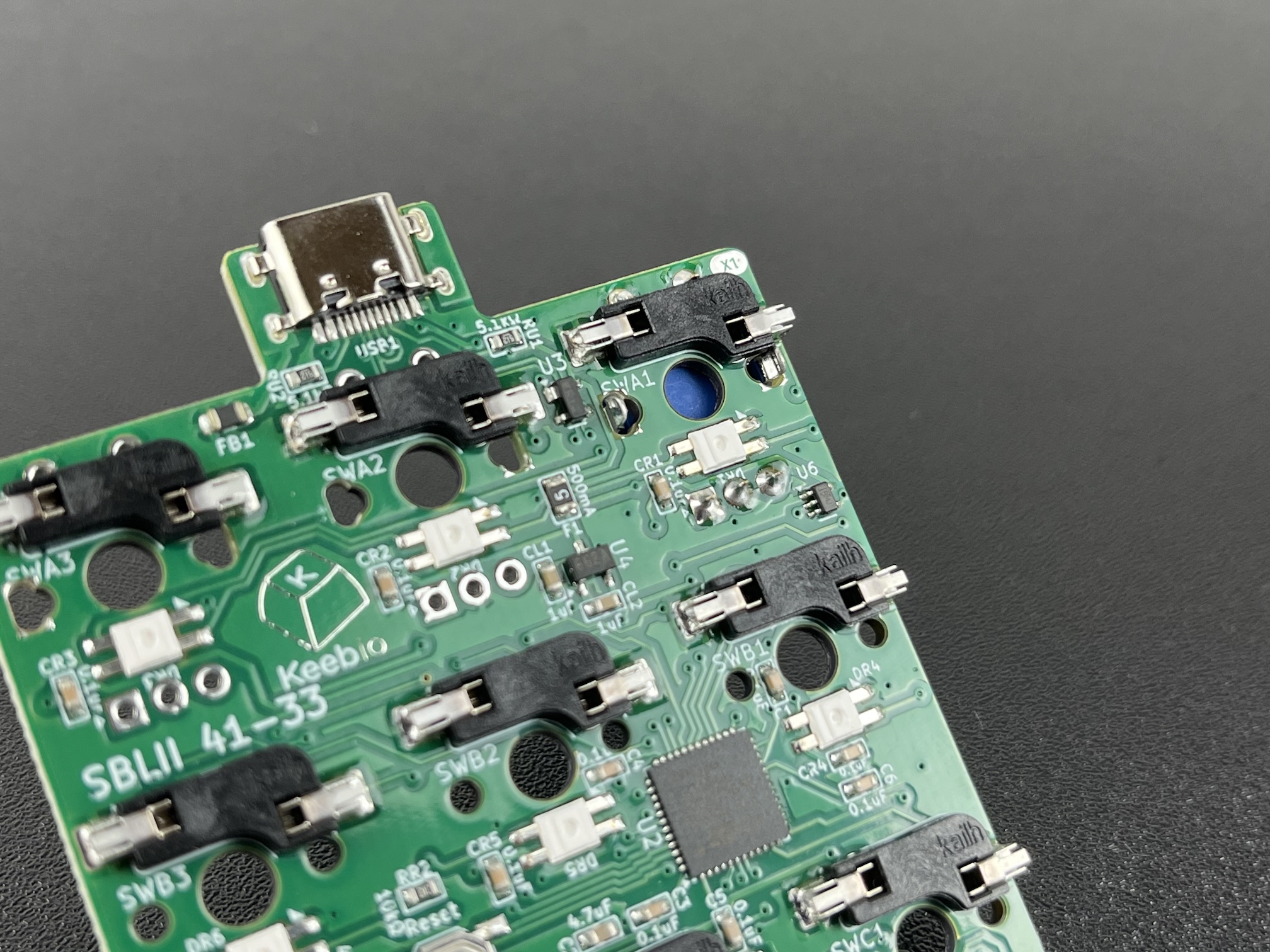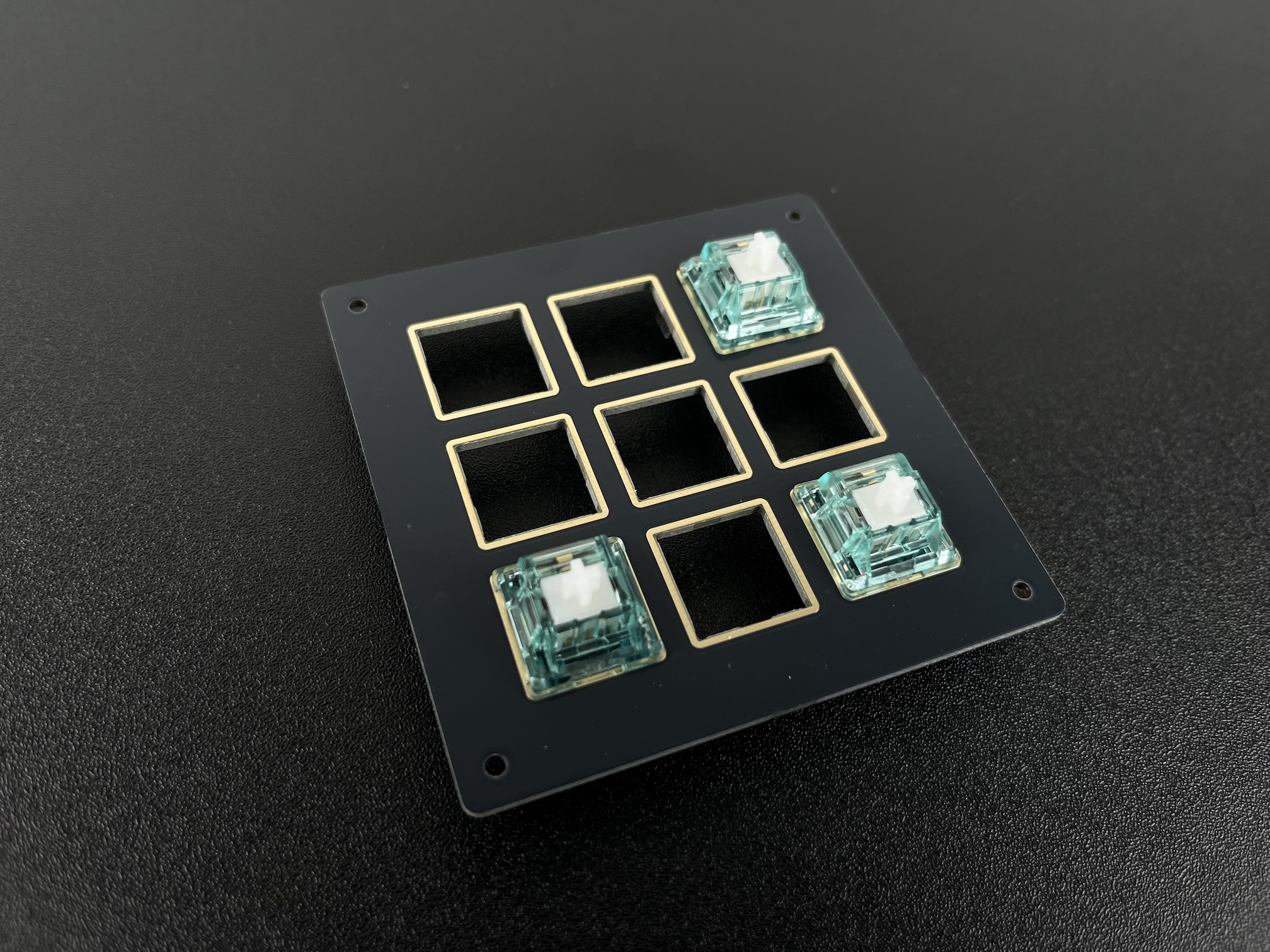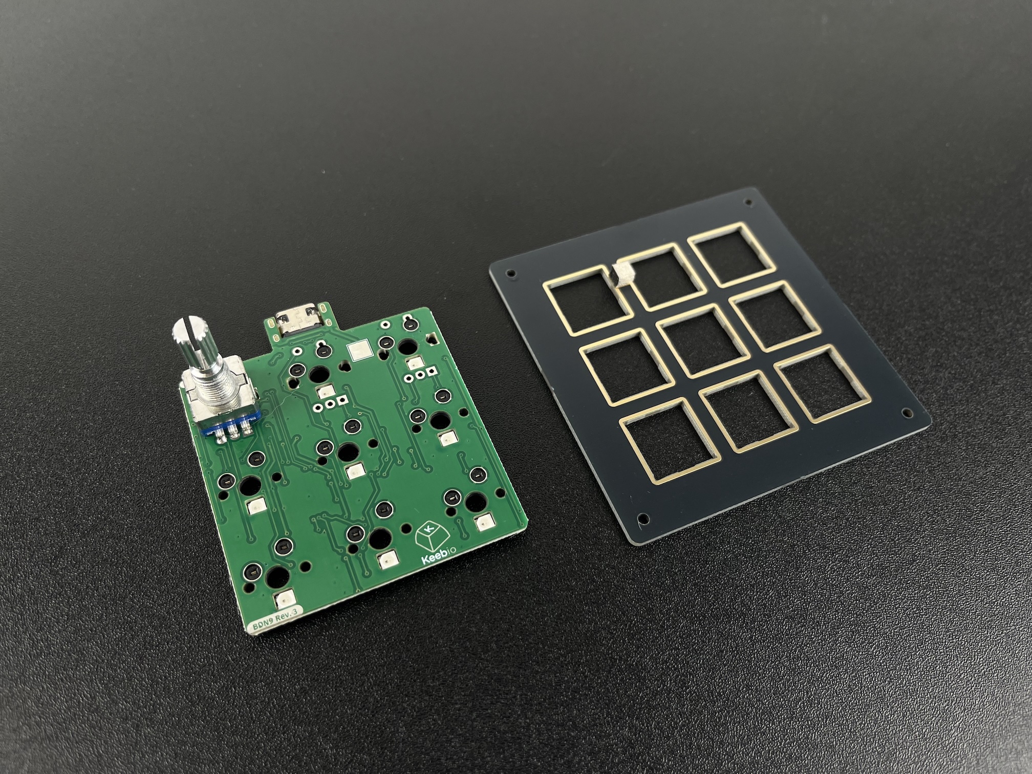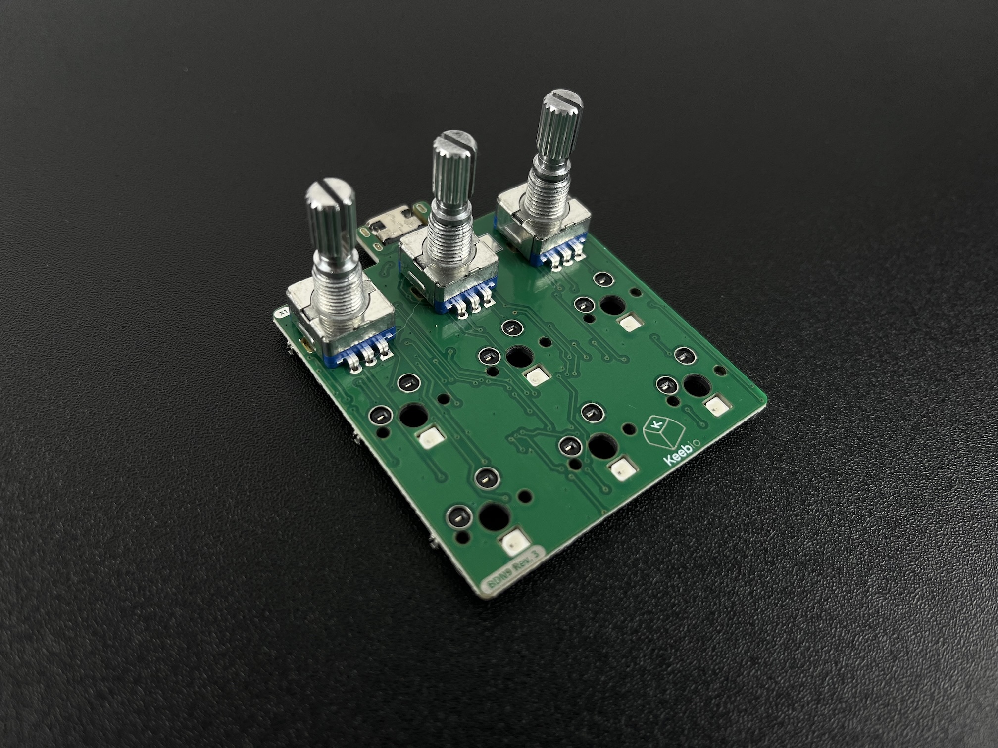 It is difficult to put in the rotary encoders into the PCB pads if the switch plate and switches are already on, so make sure you add the encoders first.