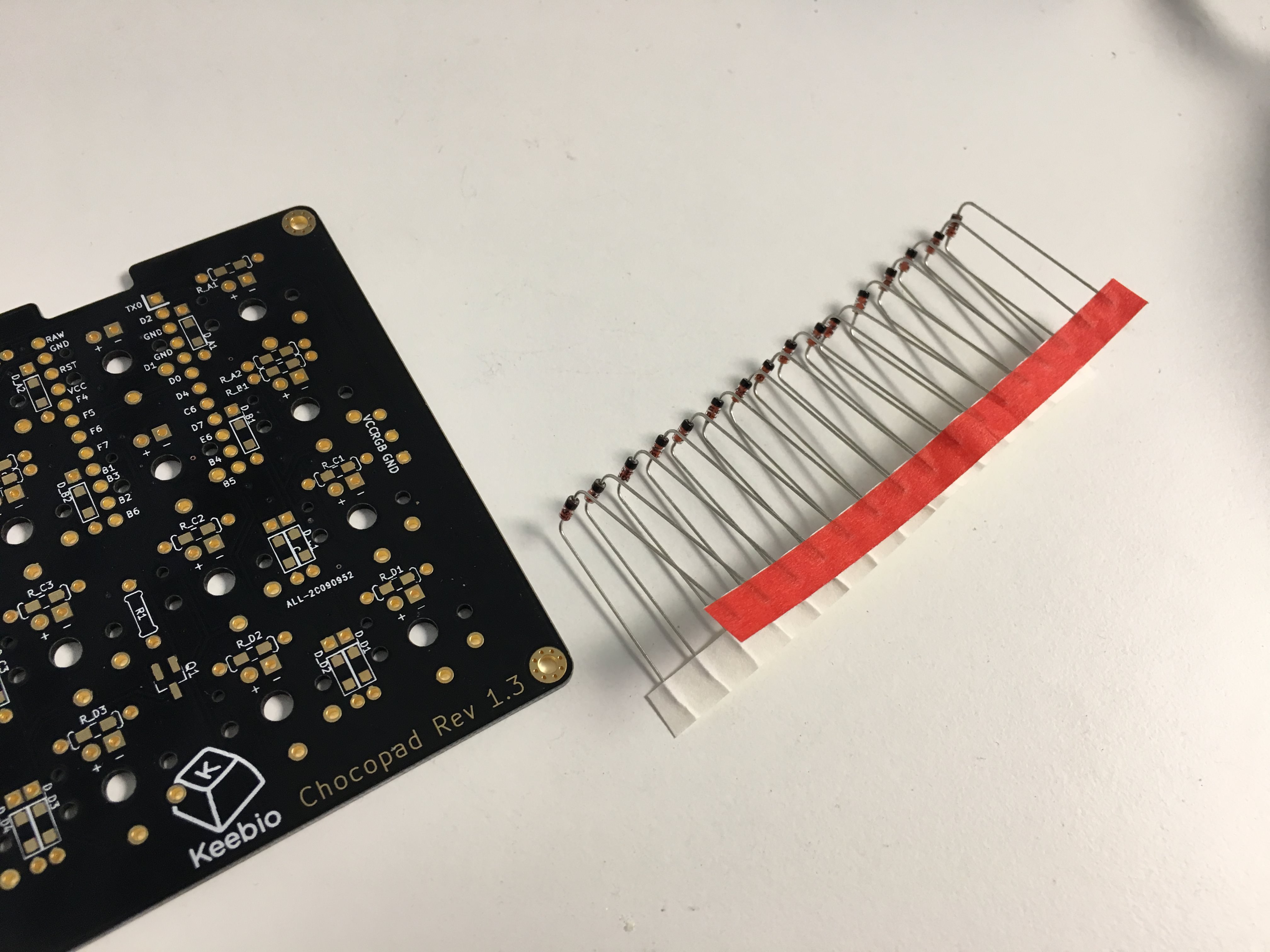 Stick them in, bend the legs out to hold them in place when you flip it over. Black band points towards the square pad. Solder, and clip the legs: