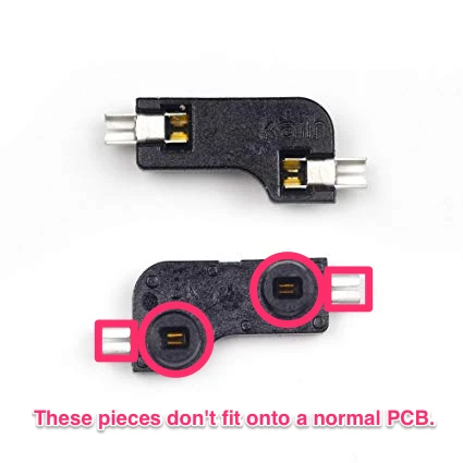 - Kailh hotswap sockets: No, PCBs have to specifically be designed for them, and typically, if it was designed to use Kailh hotswap sockets, they will already be pre-installed. See the image below that shows the parts that can't fit onto the PCB.