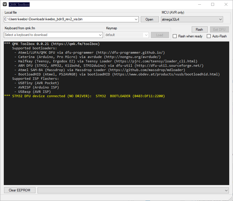 - Make sure you are using QMK Toolbox version 0.0.21 or higher.
