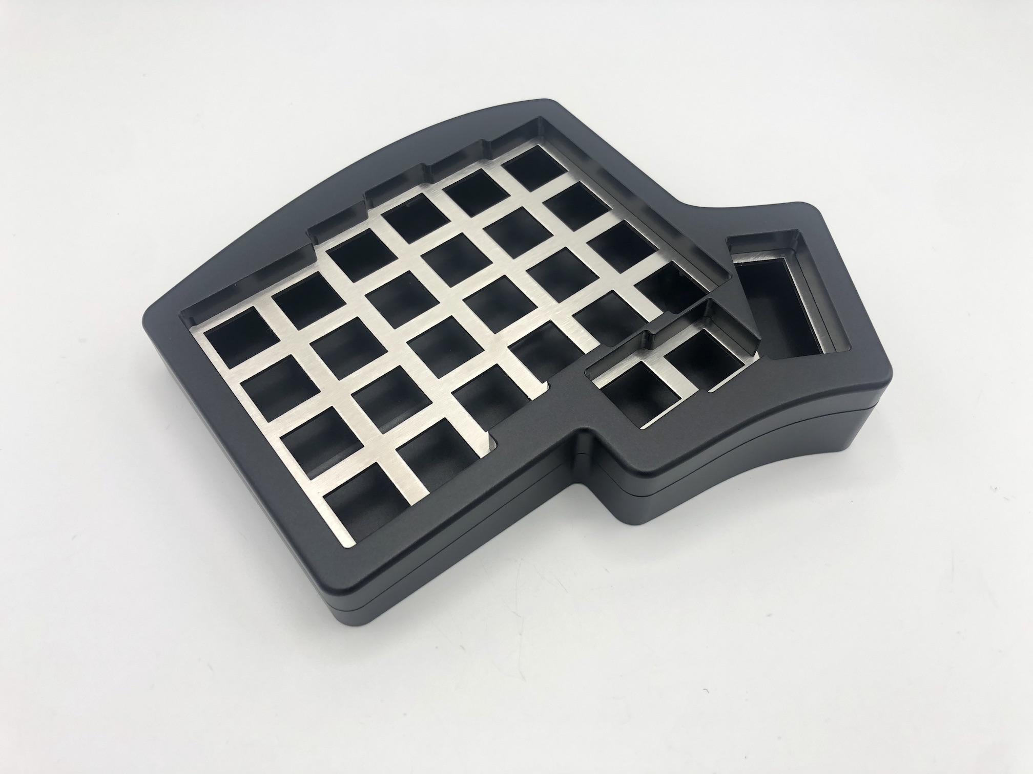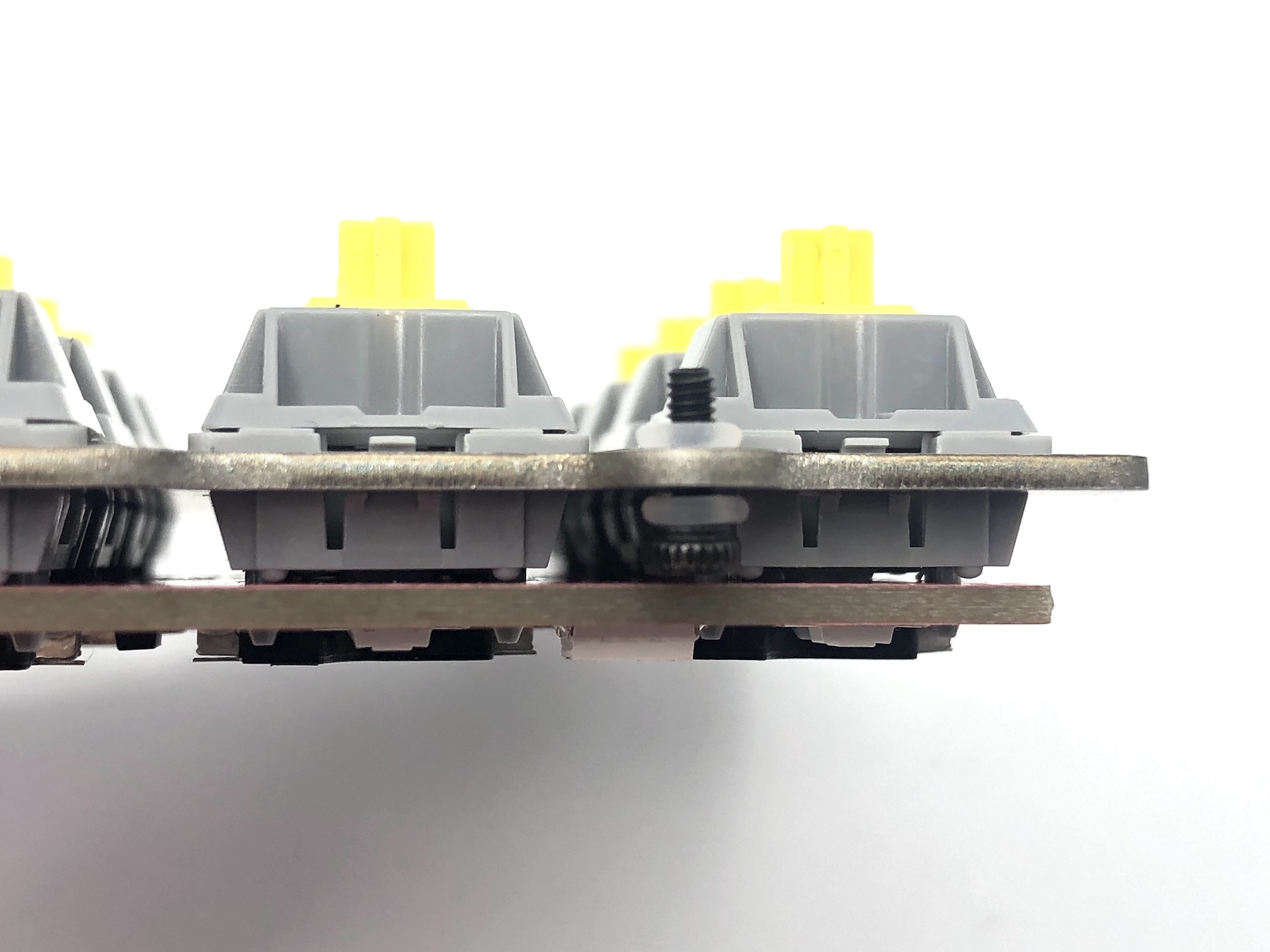 Place the switch plate into the top part of the case and screw it in. If using the o-ring bumpers for burger mounting, you don't have to screw it in fully tight, as you can leave it a bit loose to allow for some flex while typing.