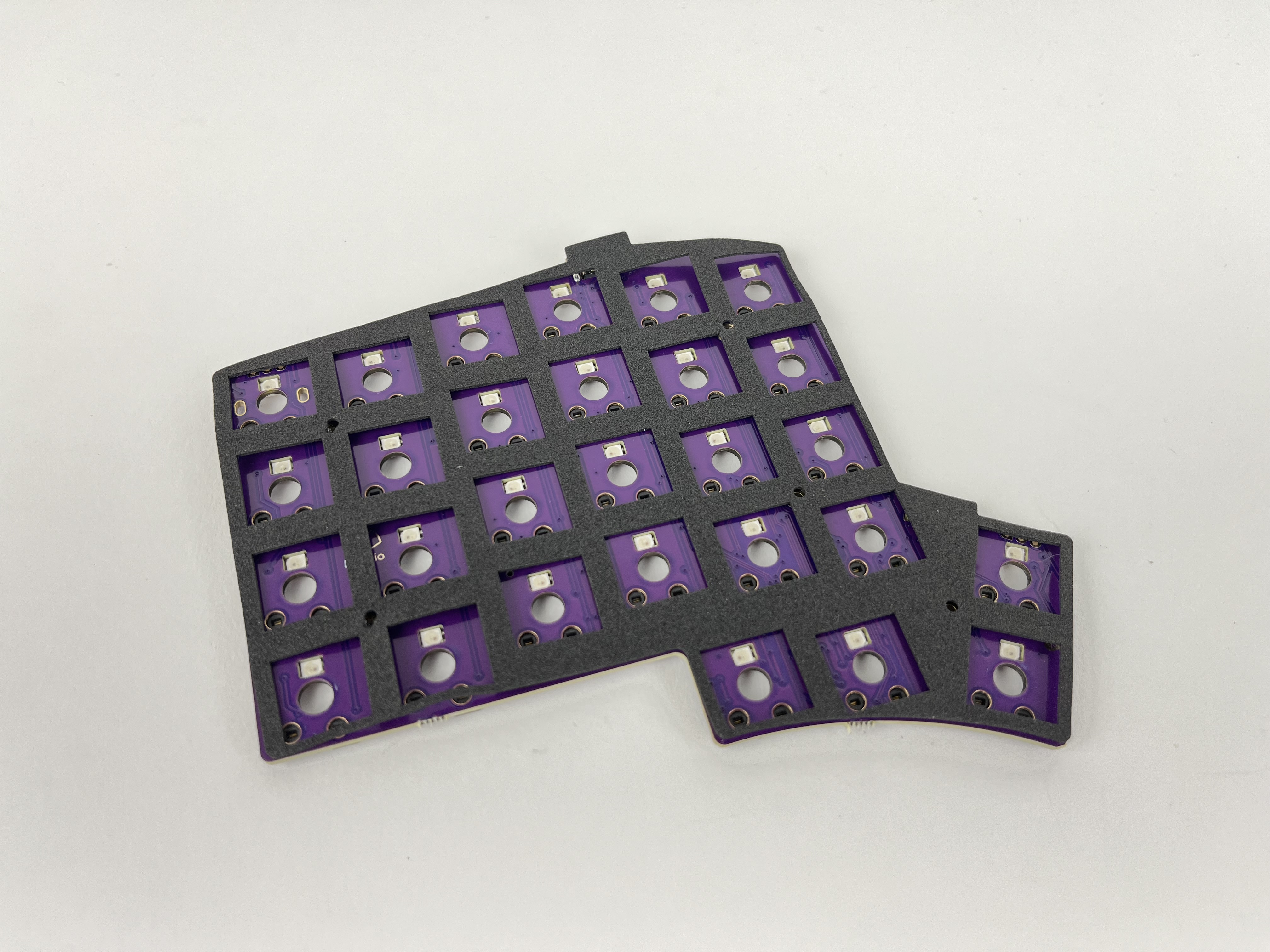 For the 3D-printed version of the case, there is no foam support piece for the switch plate, as the printed switch plate has been made thicker to replace the foam piece.