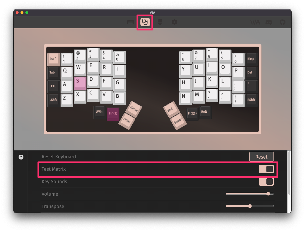 It's best to test using the Key Tester in VIA with Test Matrix