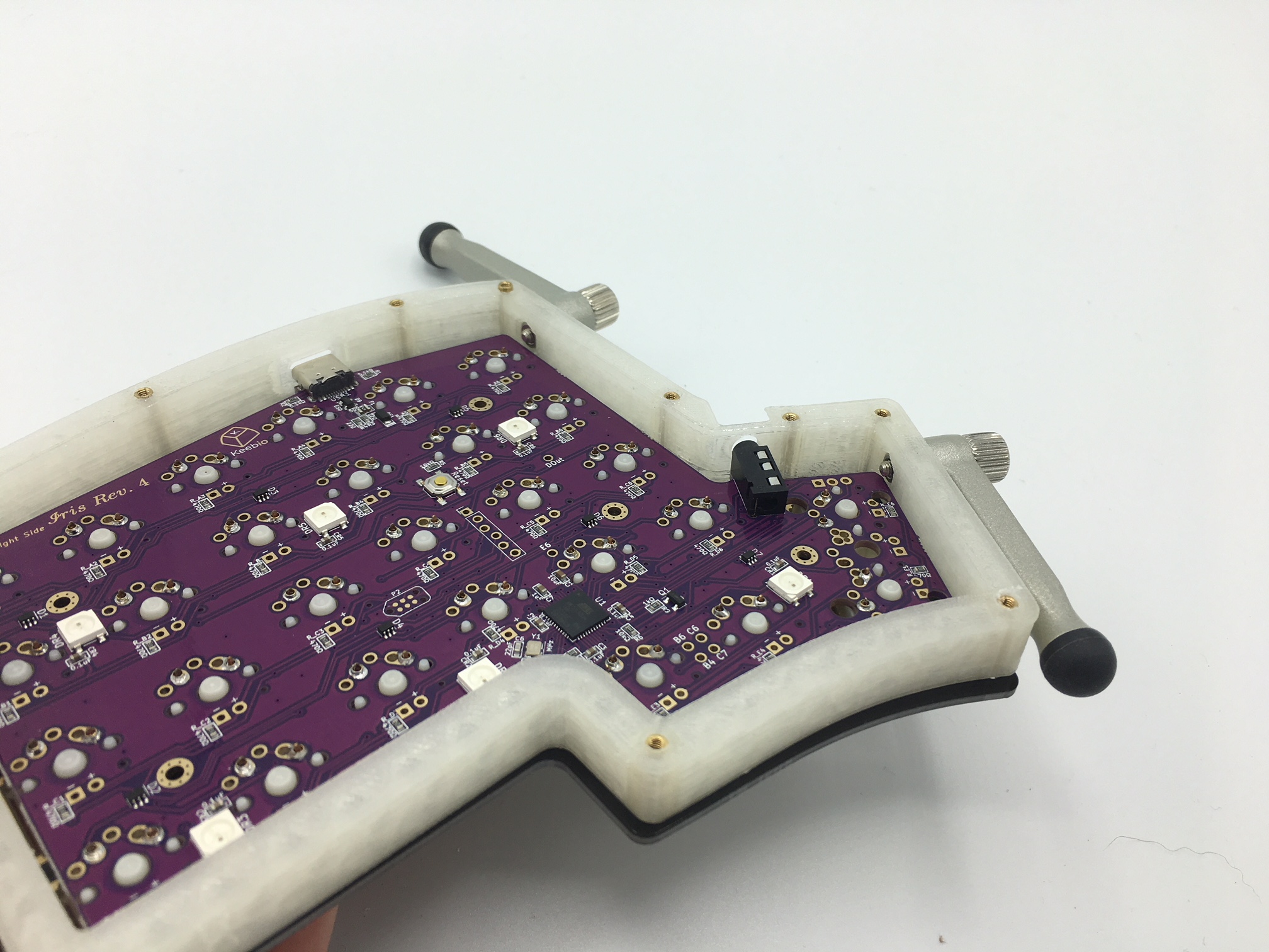 Your goal at the end of this guide is to have your Iris PCB sitting cozy inside the 3D printed layer with some rockin' legs. This can be tricky, but that's why we have this guide for you!