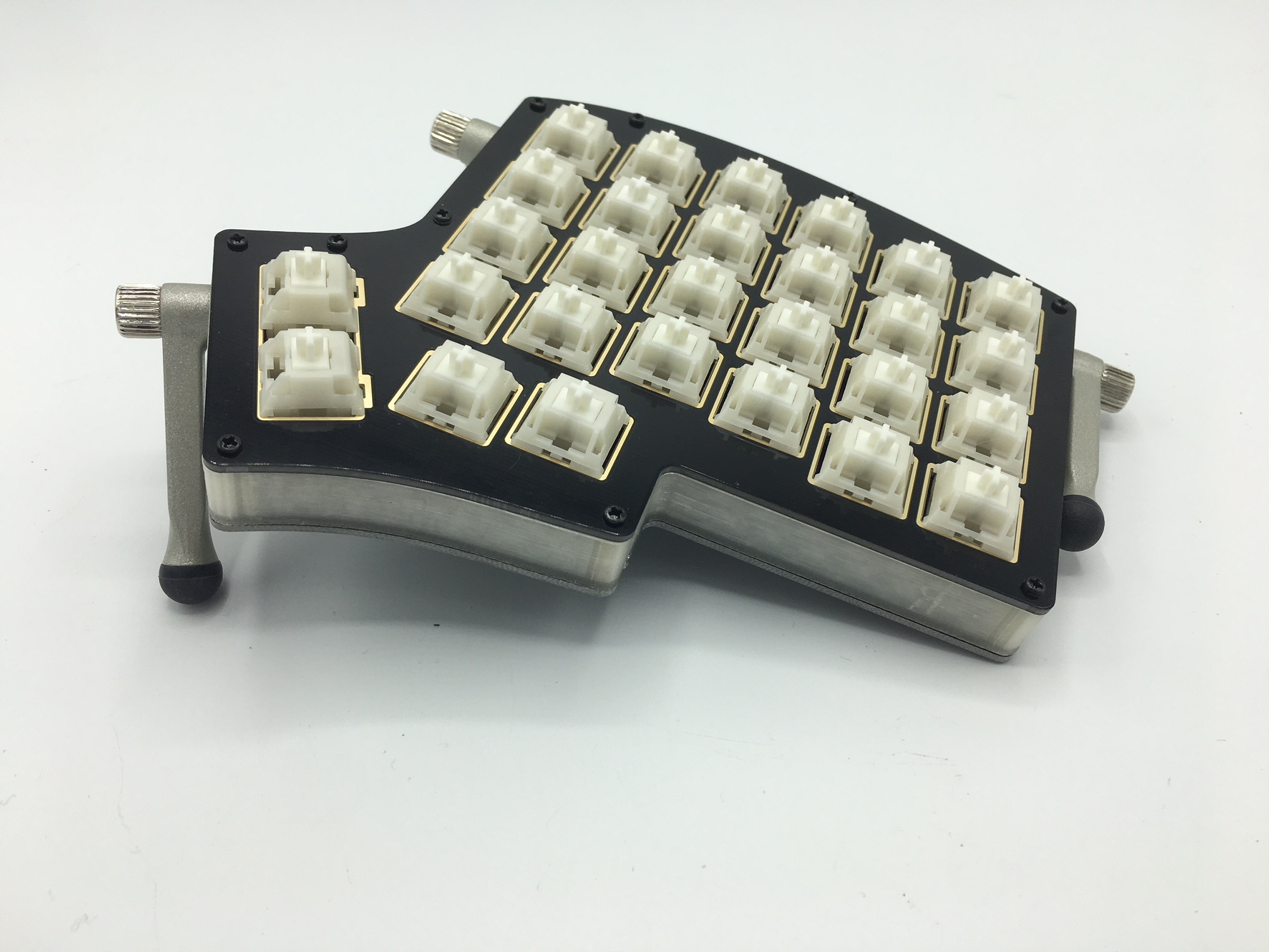 Now that you've sandwiched the middle layer in between the switch plate and the bottom plate, play around with the legs to get everything angled the way you like it.