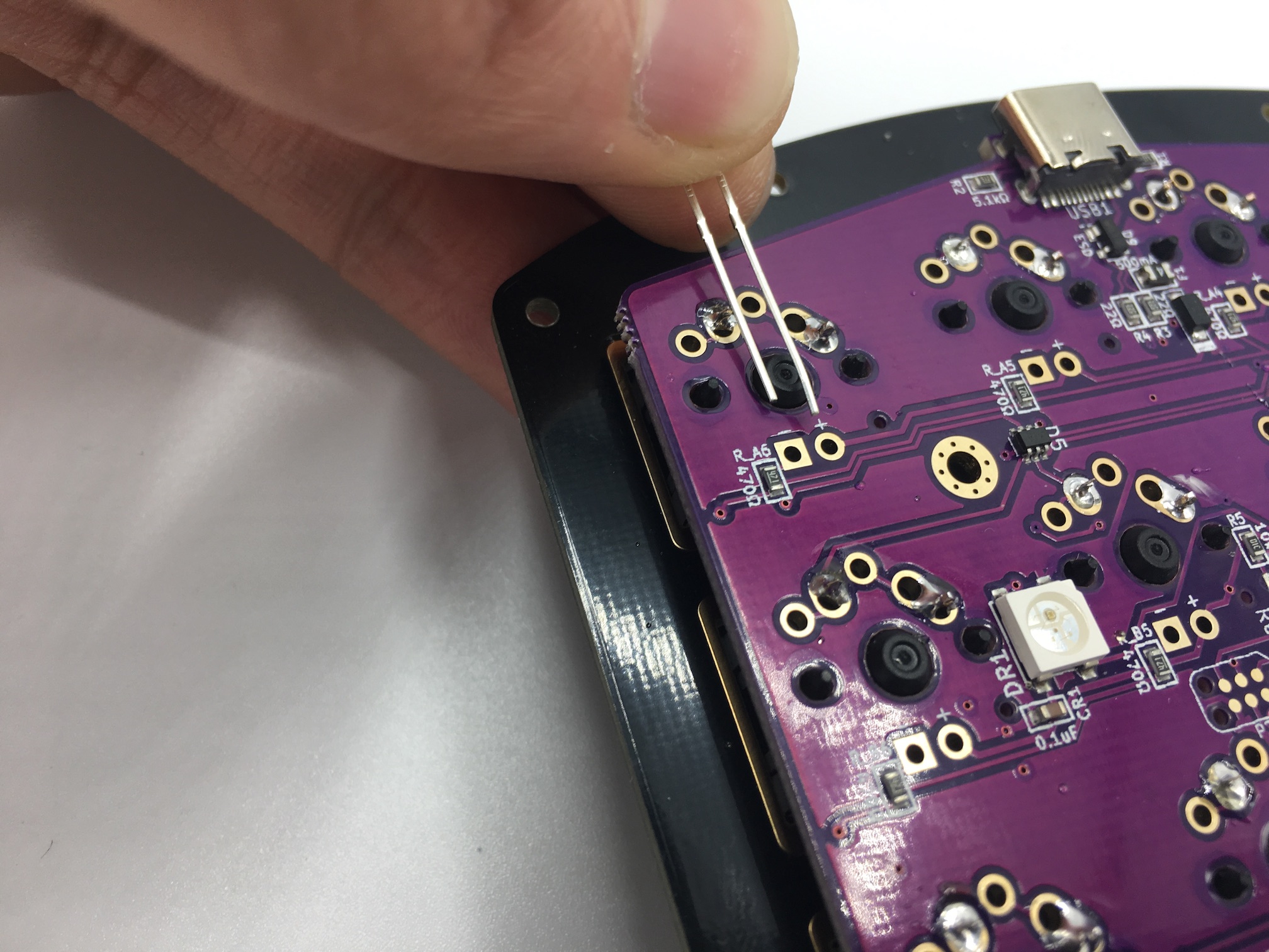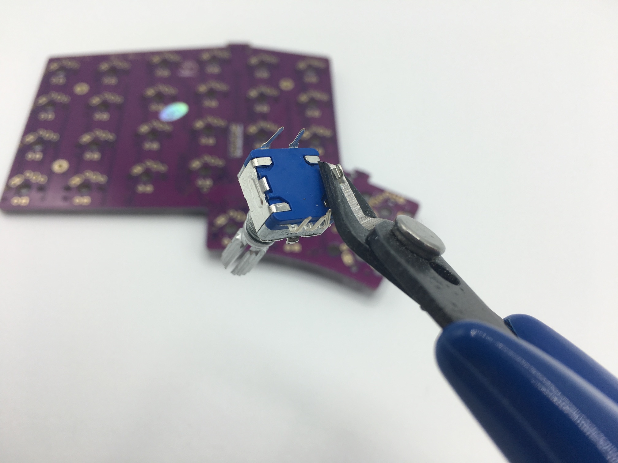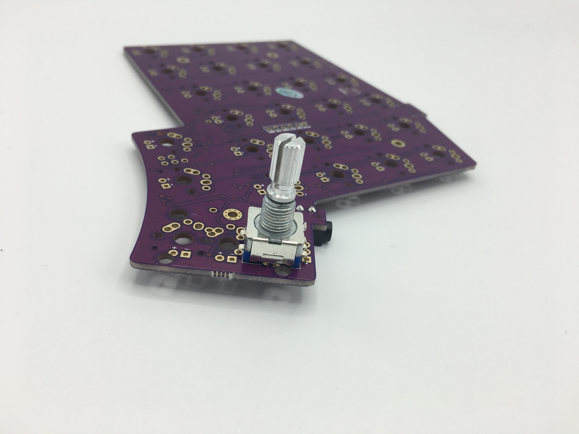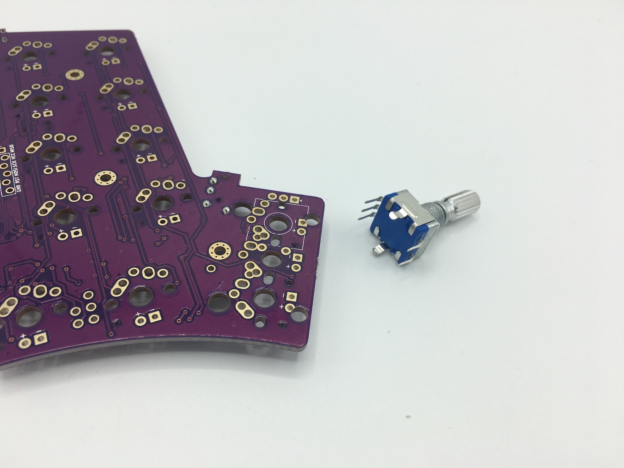 If adding a rotary encoder, clip the two larger mounting pins on the encoder so it can fit onto the PCB: