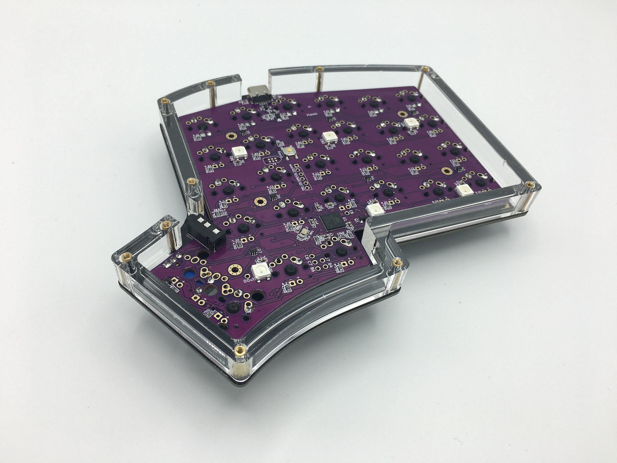 If you are using acrylic plates, you may want to add something in between the bottom side of the plate and the top of the PCB. This prevents the plate from shifting around, since for a 3mm plate, the switches are unable to clip in.