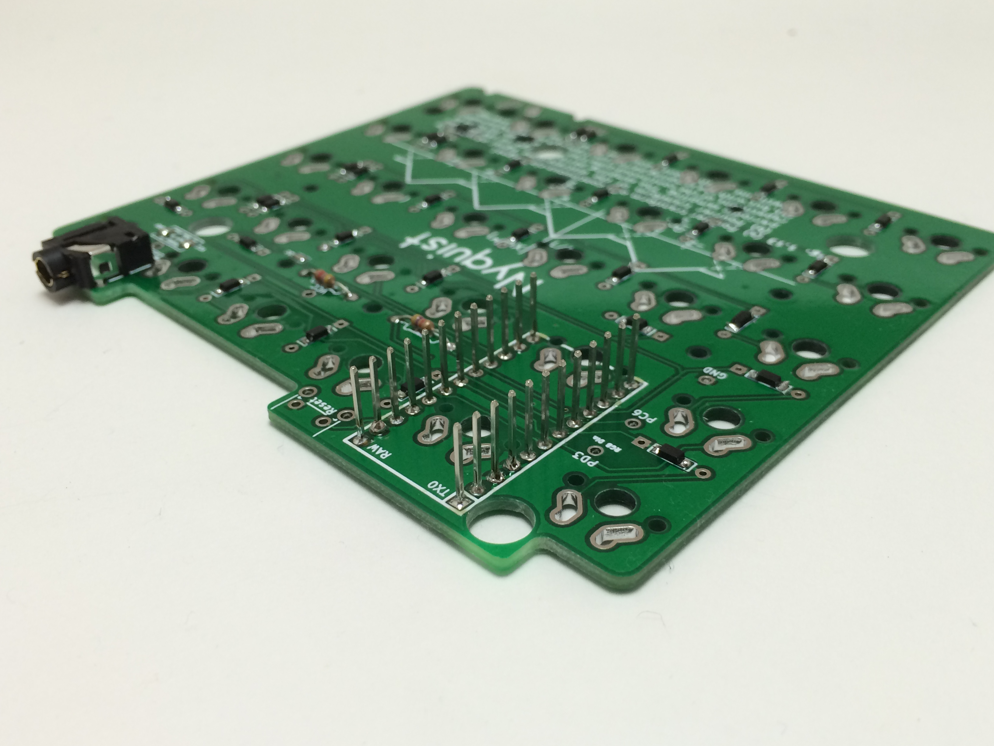 Starting with Rev. 1.4, the TRRS jack has been changed to a slimmer one and the PCB has been designed to not need TRRS jumpers, making the build easier. There are no solder jumpers anymore.
