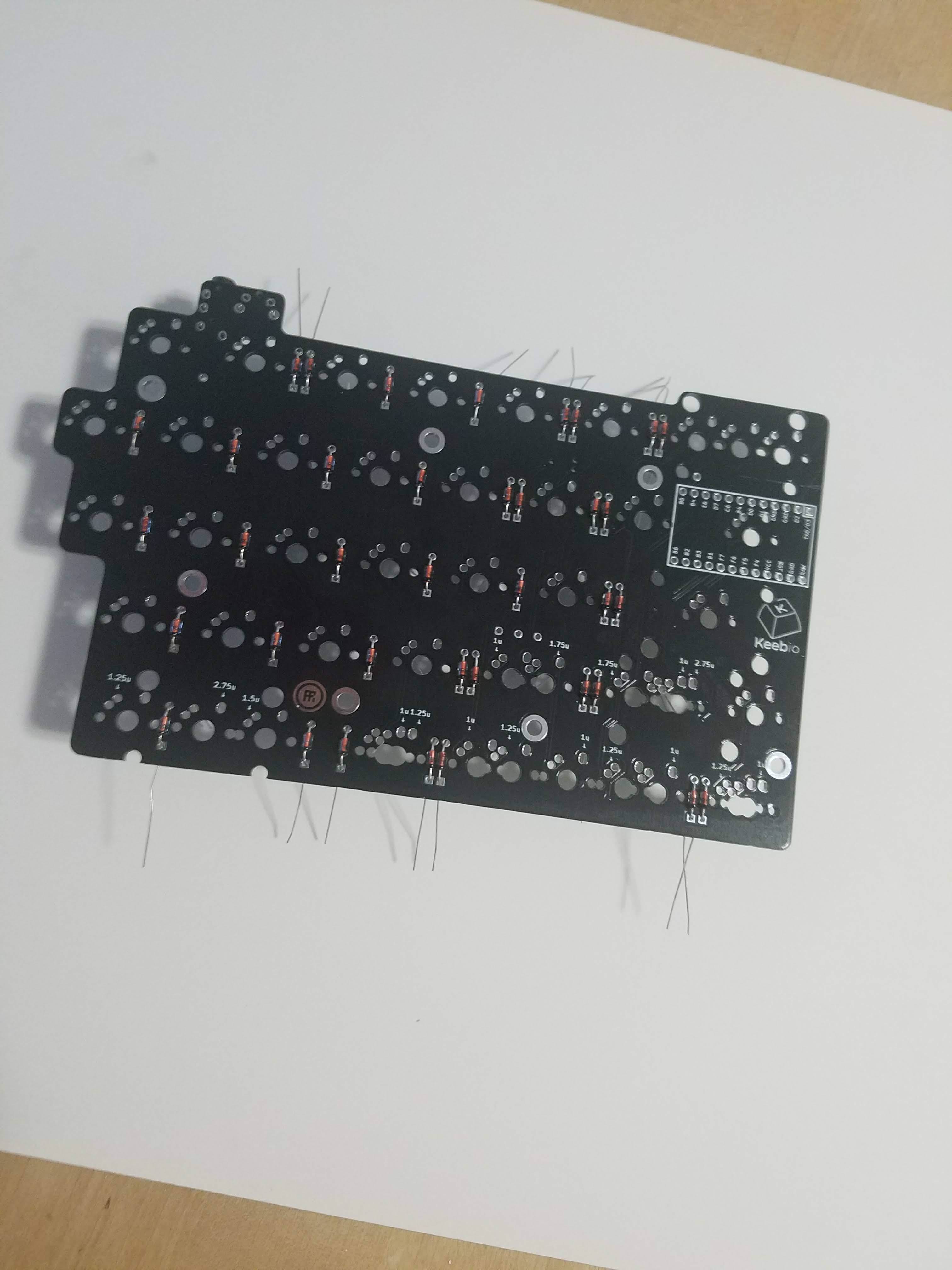 Trim down the pins with a flush cutter after it's soldered, then repeat on the other half.