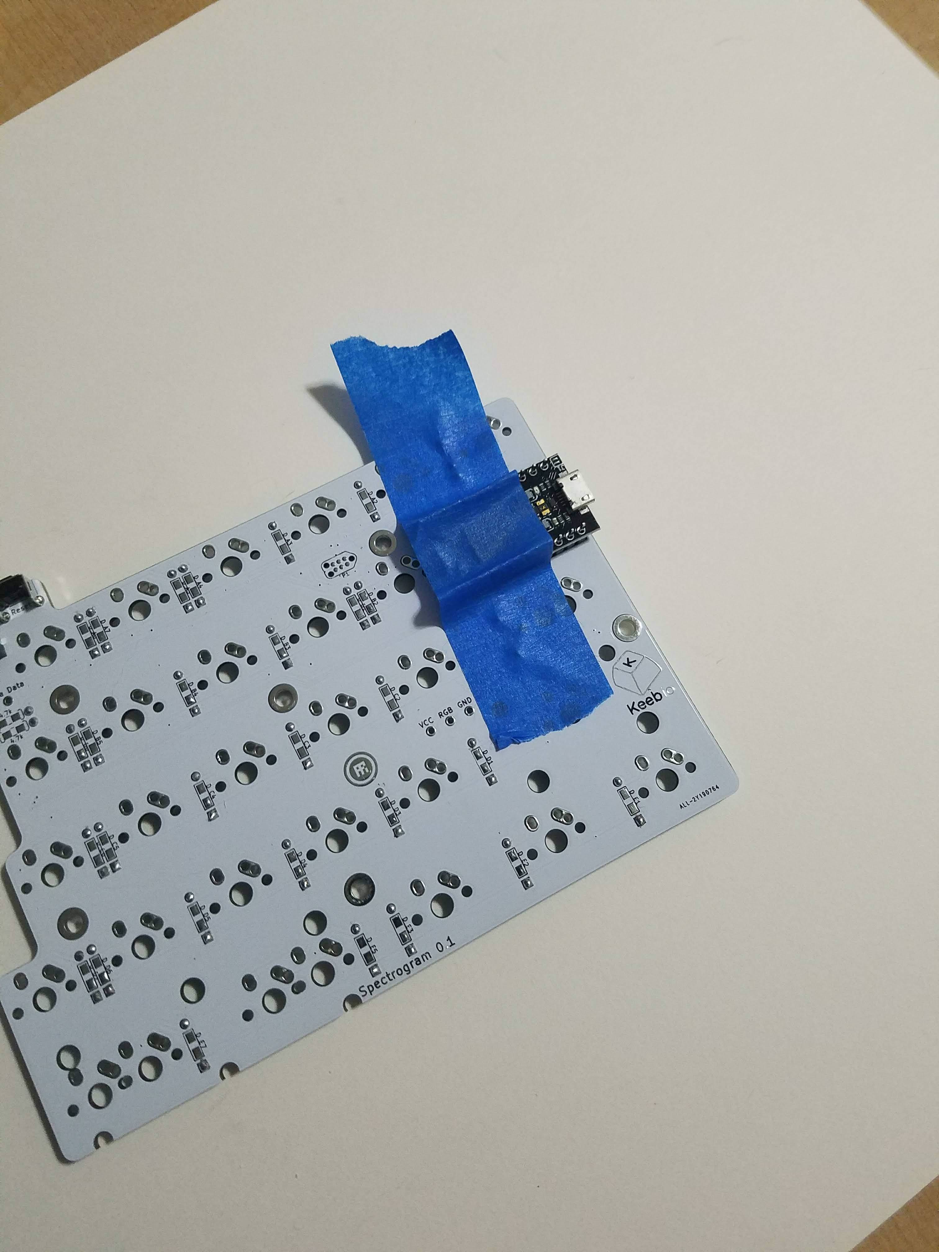 To make sure that the switch pins don't touch the Pro Micro, clip them flush with the PCB. Afterwards, add Kapton or electrical tape on top of it.