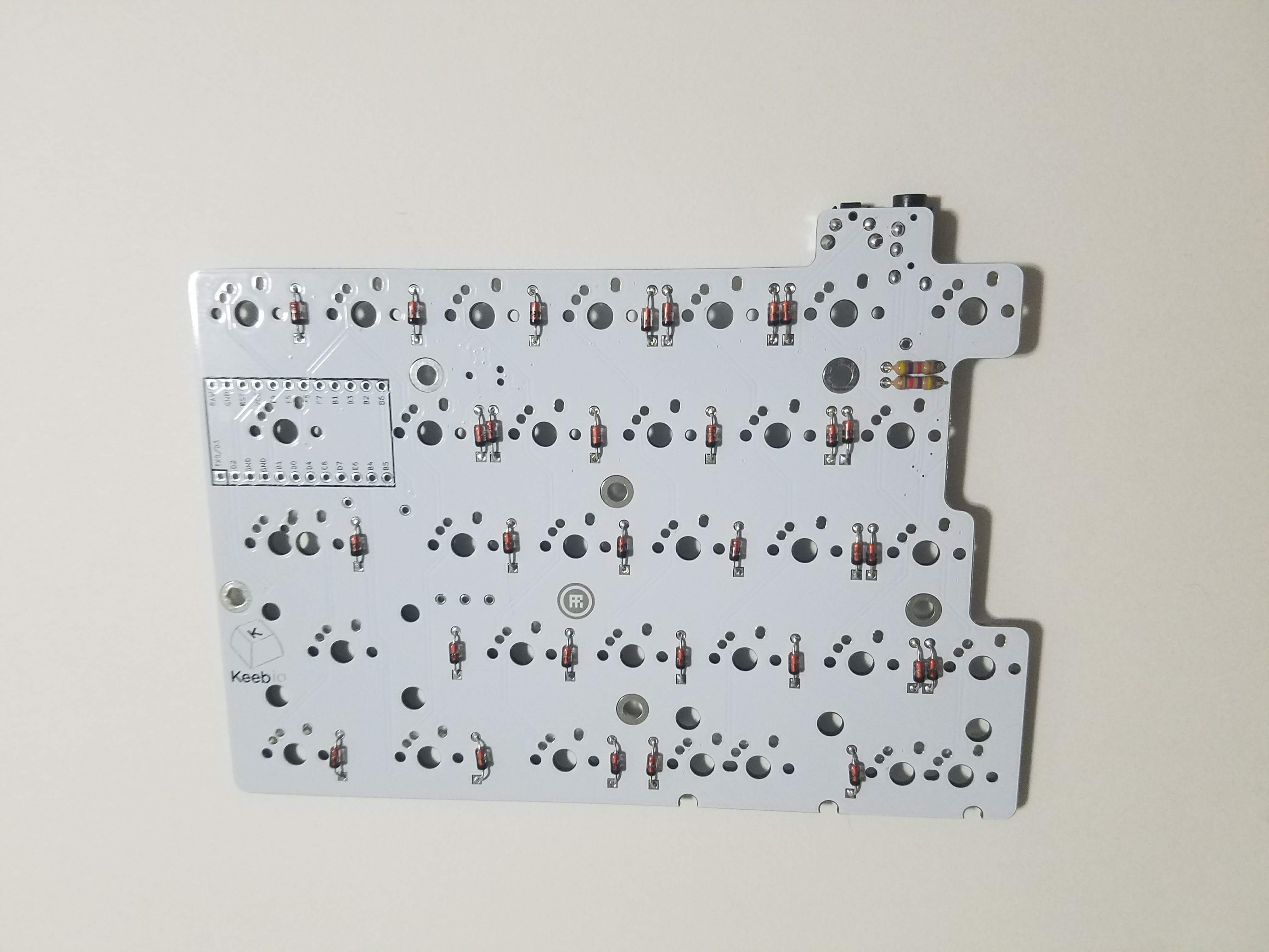 After installing the diodes, add your TRRS jacks and reset buttons.