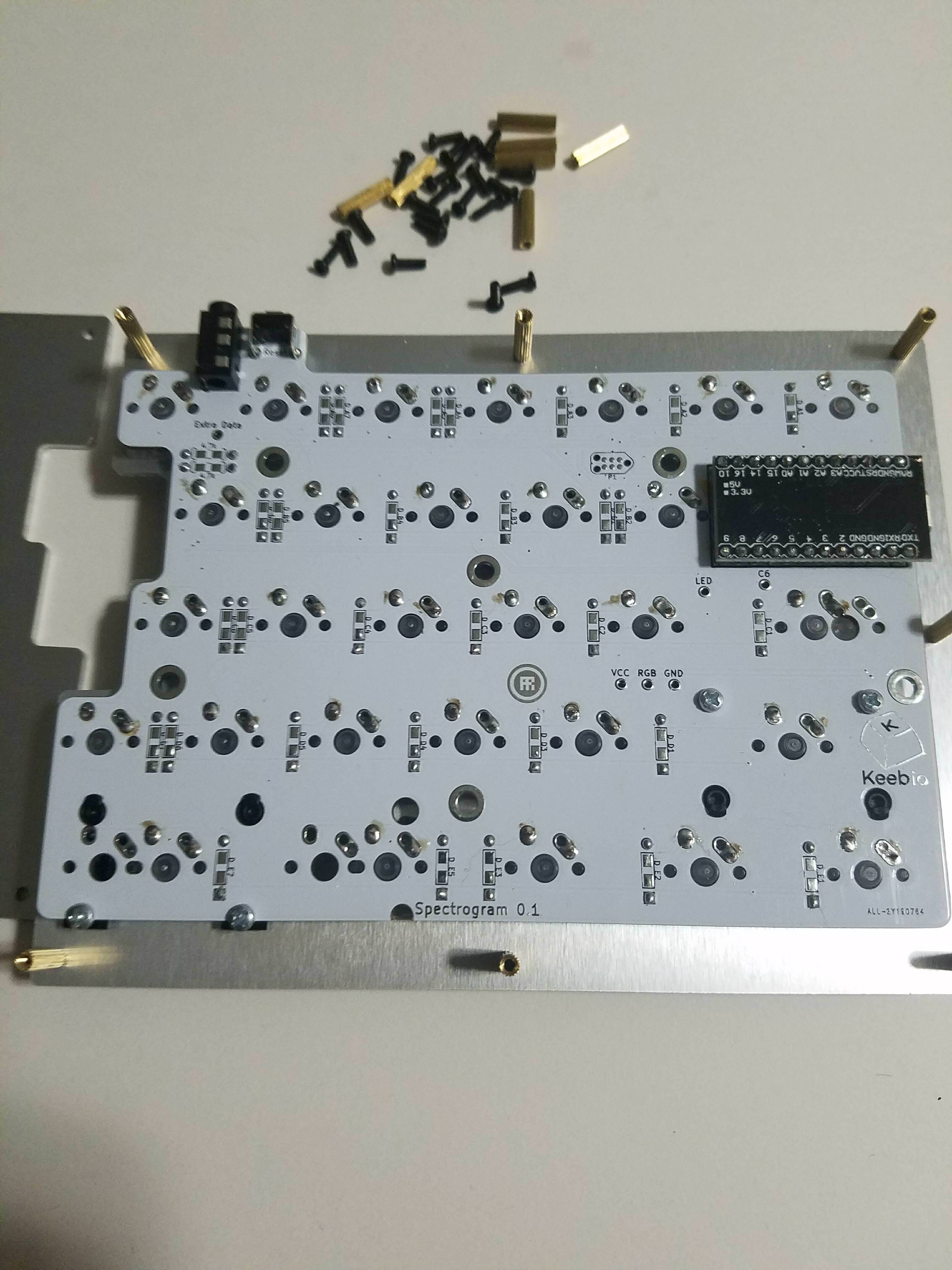 Not shown in these pictures, but add electrical tape or Kapton tape on top of the Pro Micros and TRRS jacks to prevent the metal portions of them from touching the bottom plate.