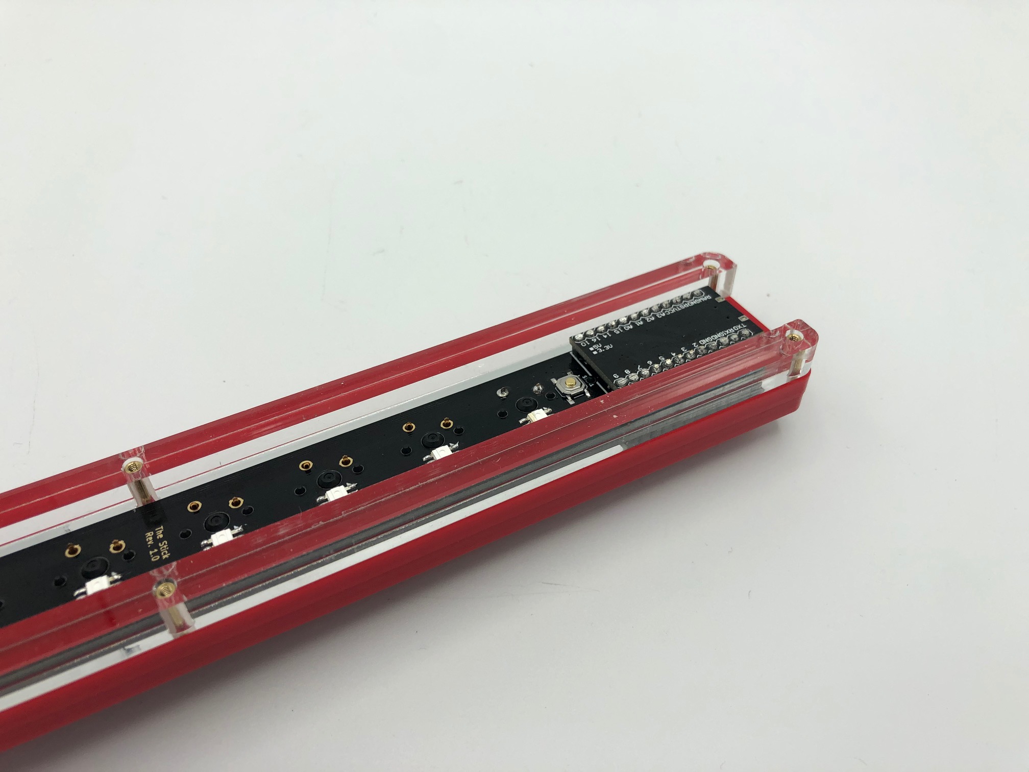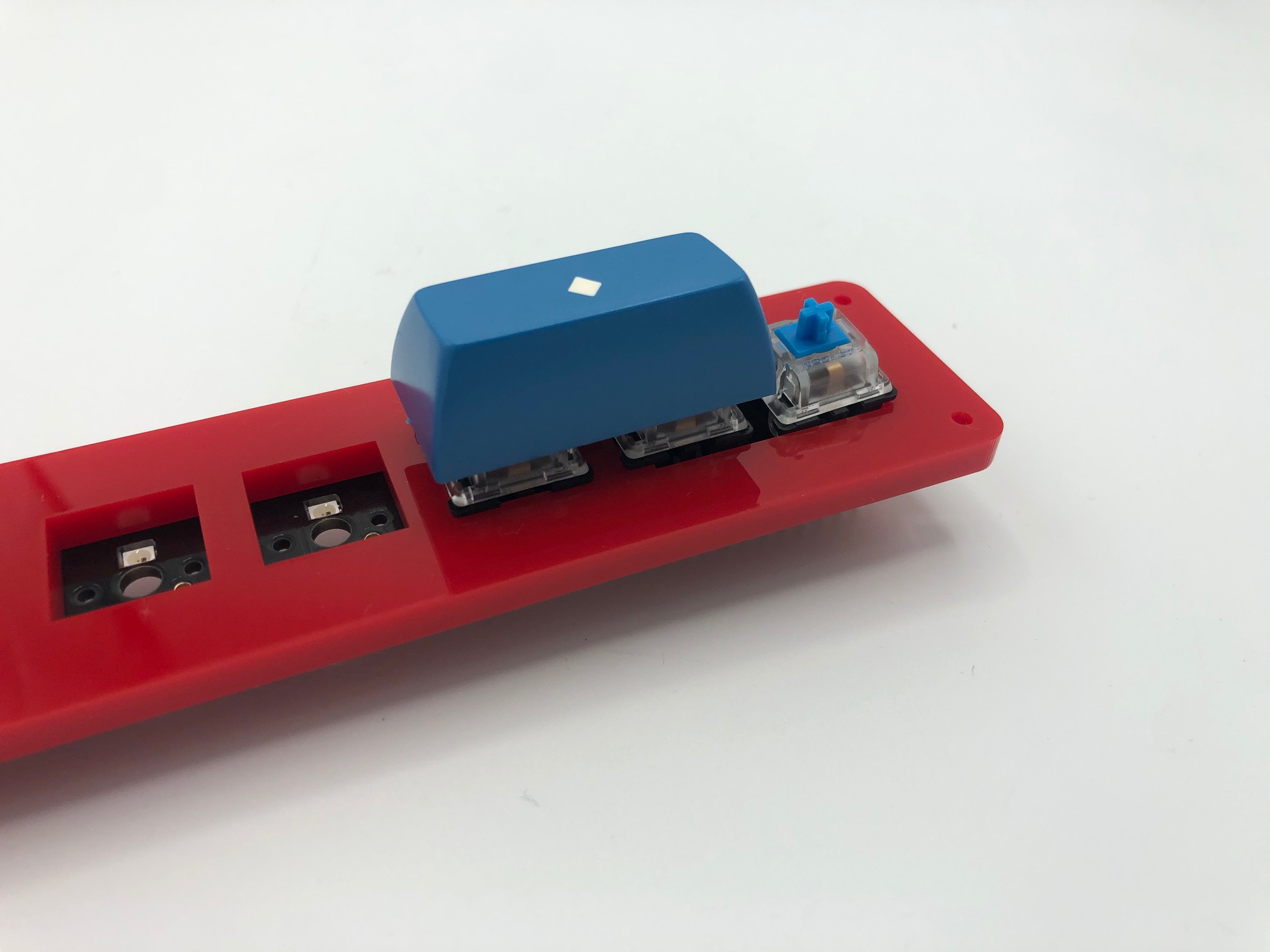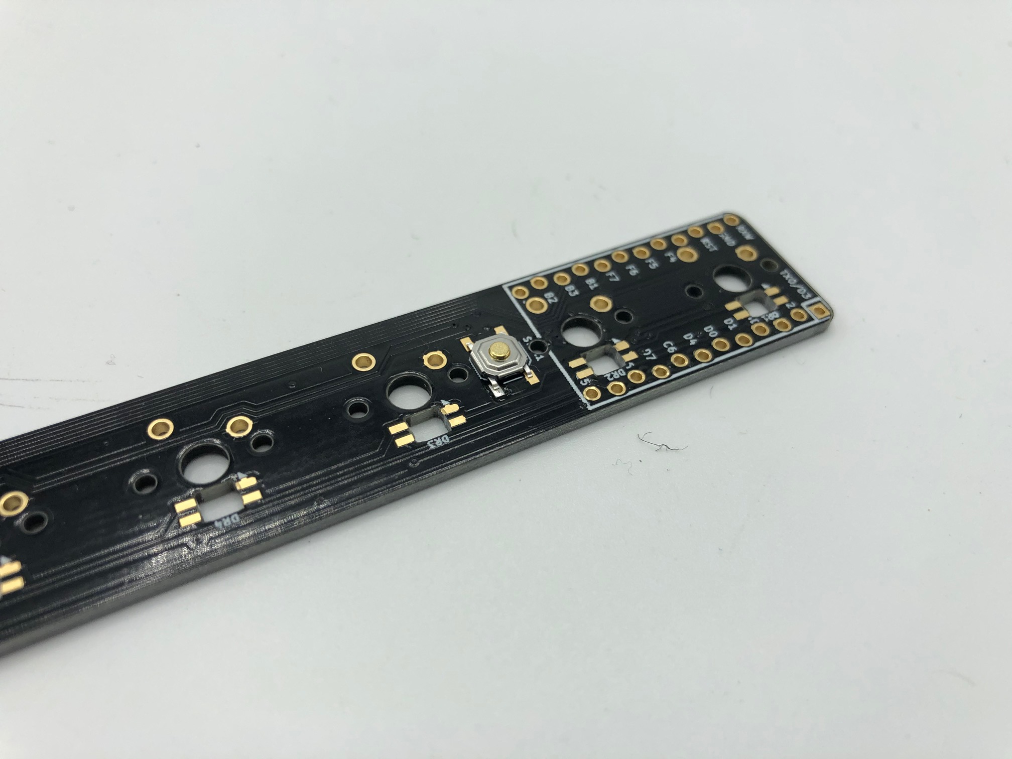 If you used Method 2 of soldering the header pins, you'll see that the portions of the header pins will stick out a bit a hit the underside of the switch plate. This will be okay, but it just makes soldering on the two switches there a bit more difficult.