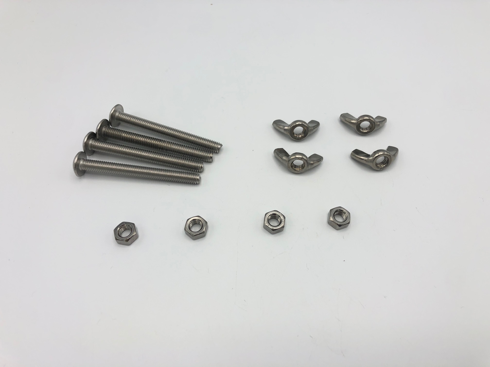 - M6 or 1/4" diameter carriage bolts, nuts, and wingnuts