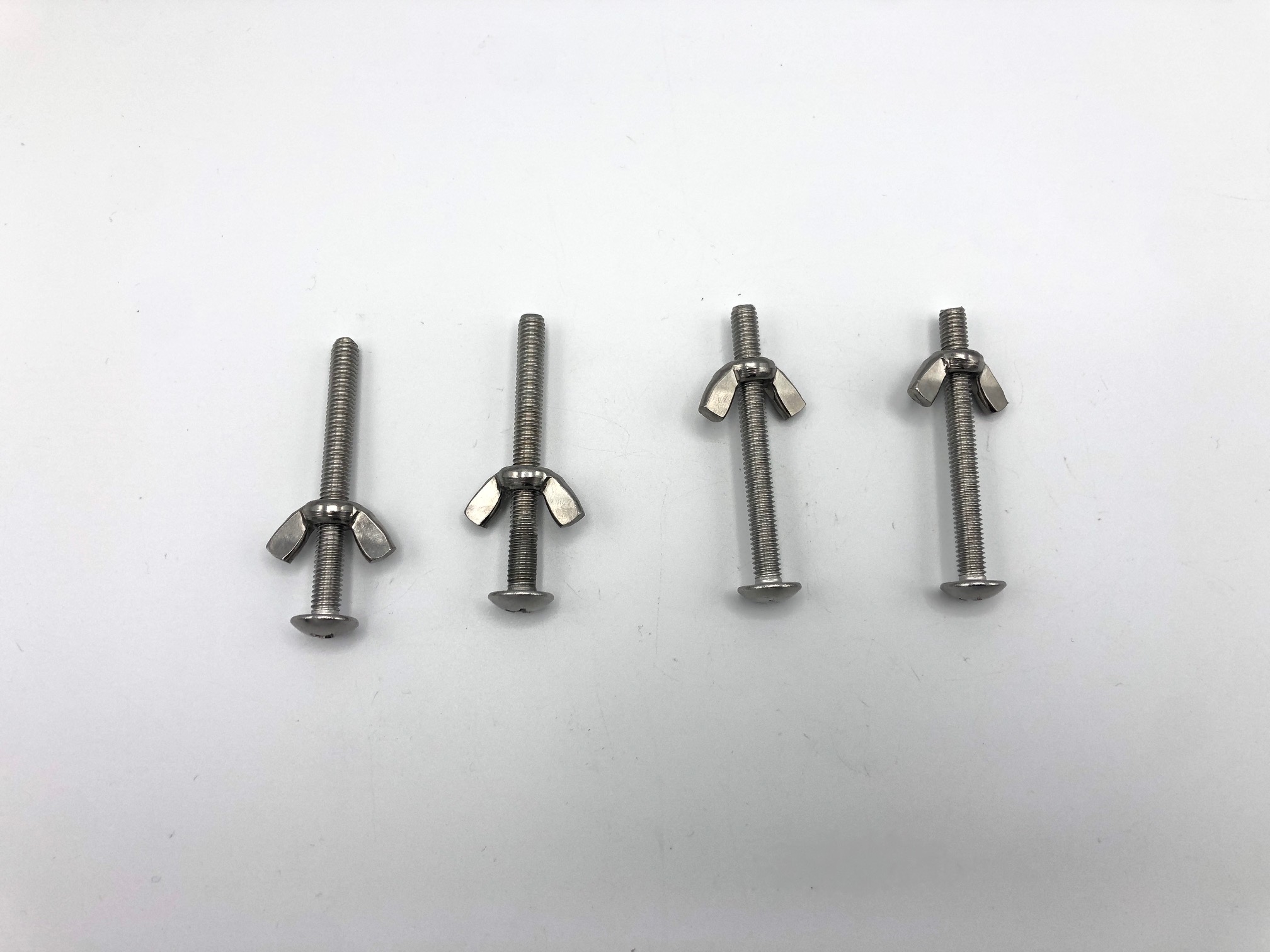First, add wingnuts or nuts to each bolt. Wingnuts are recommended for the underside of the middle layer, as it's easier to make adjustments with them.