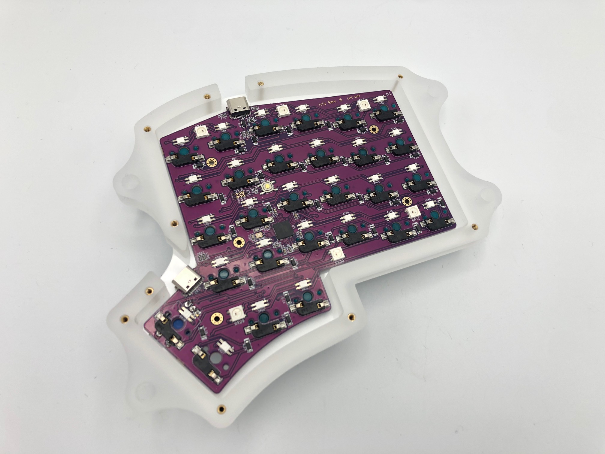 If you are using a 3D-printed top shell with your board, ignore this section and use the info about the top shell from the Iris Rev. 6 build guide for instructions.