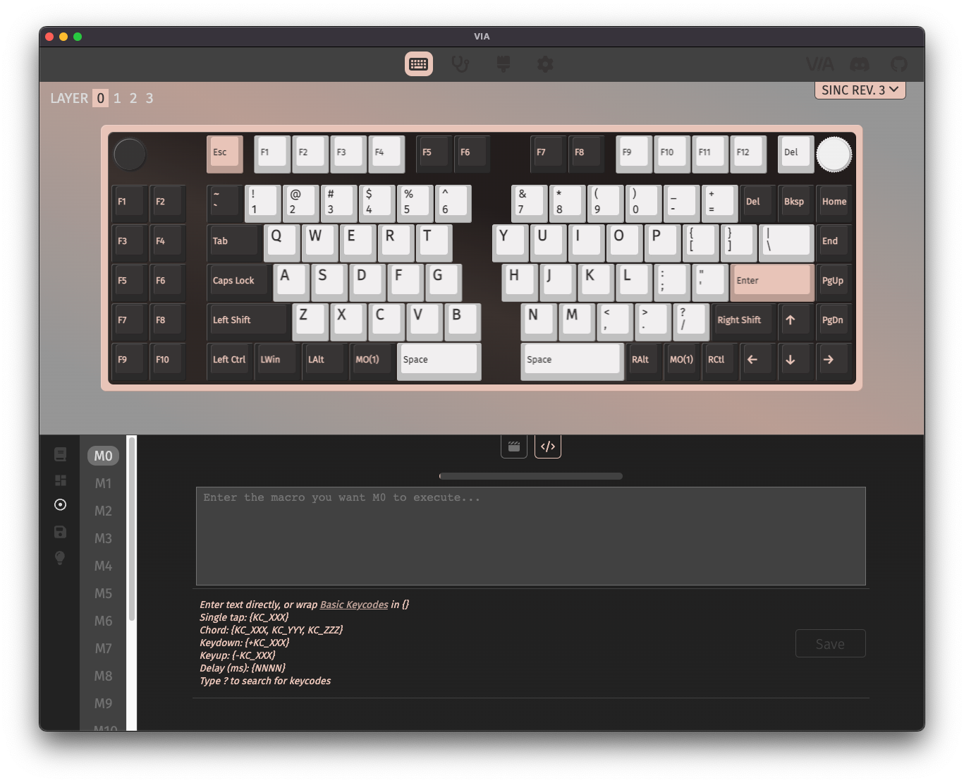 If you've added a macro keycode to your keymap, you can program the macro here.