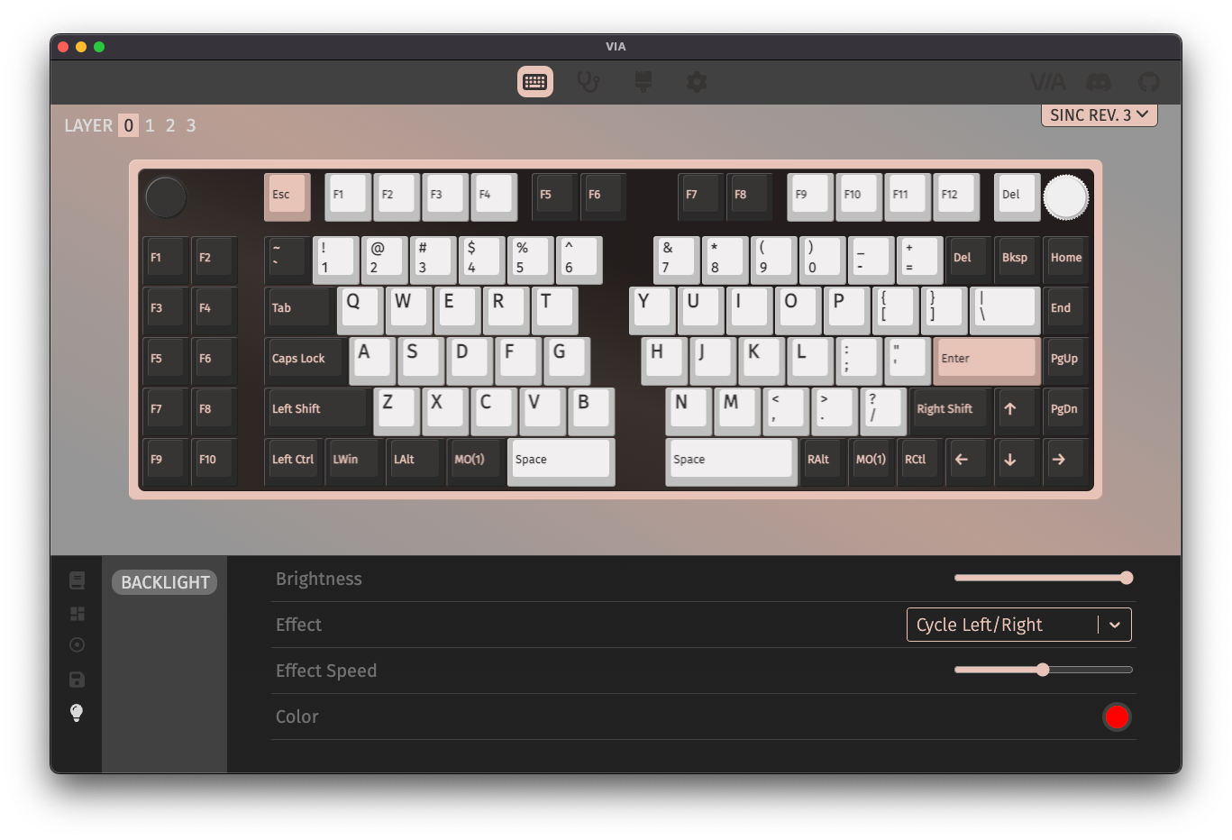 VIA Configurator is a desktop app that talks to your VIA-enabled keyboard and allows you to remap keys on-the-fly, as well as toggling layout options, programming macros, and controlling lighting.