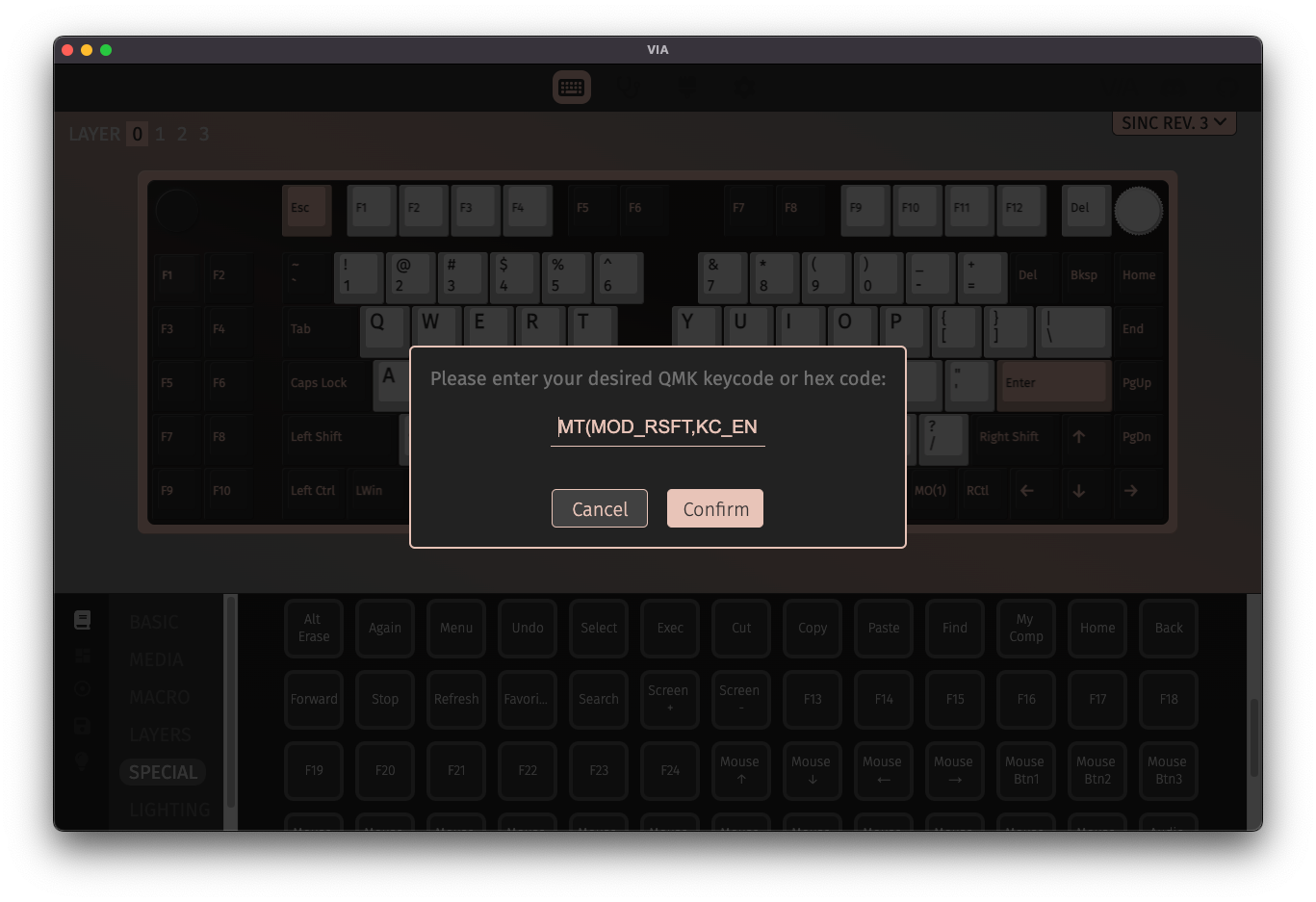If you hover over a layer option, VIA will give you a brief bit of information about what it does. For more in-depth knowledge about what a layer is and how to use them, see A Primer on Layers.