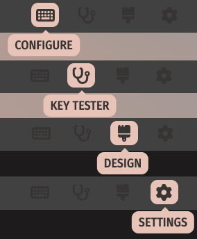 You'll want to be on the Configure tab (at the top) to verify a few things before testing your keys.