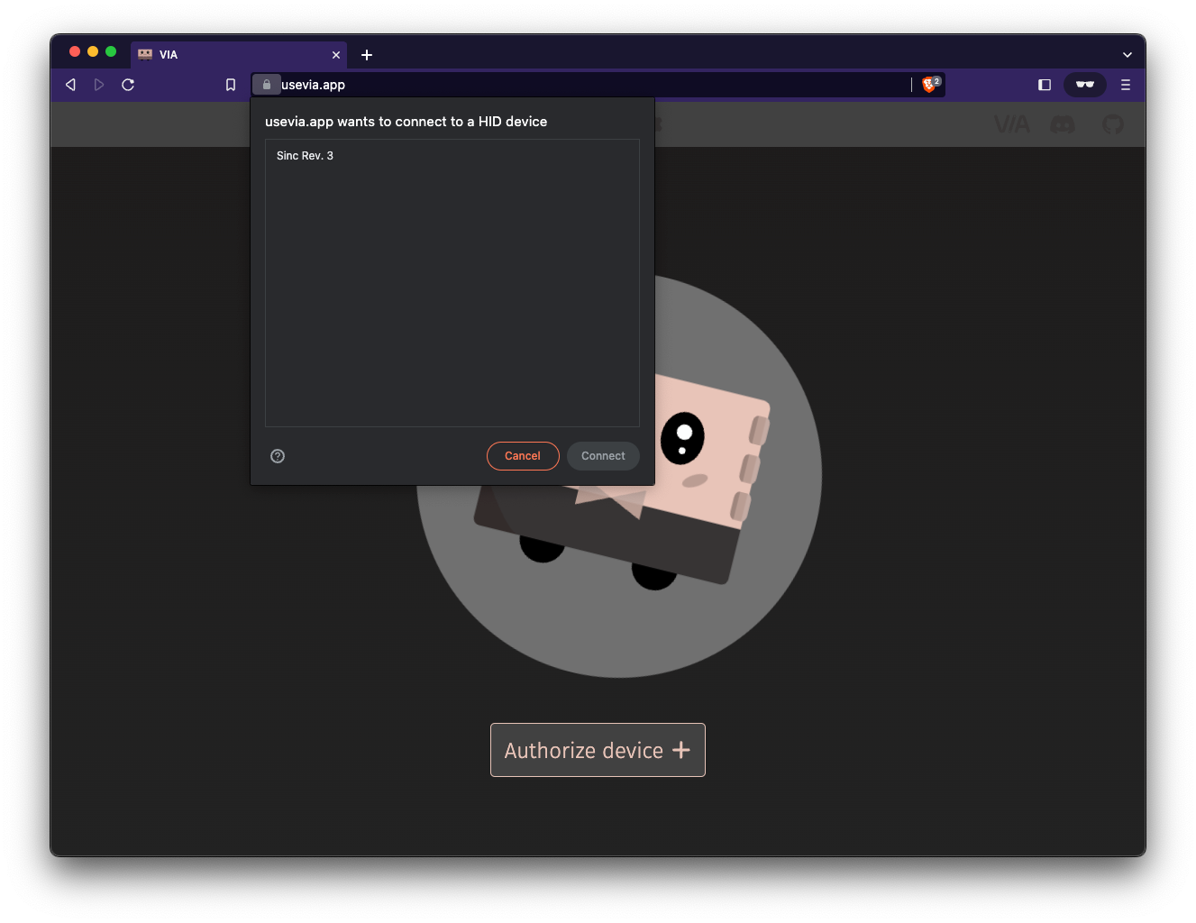 Next, you will need to give your web browser permission to connect to your keyboard, so click on Authorize device +